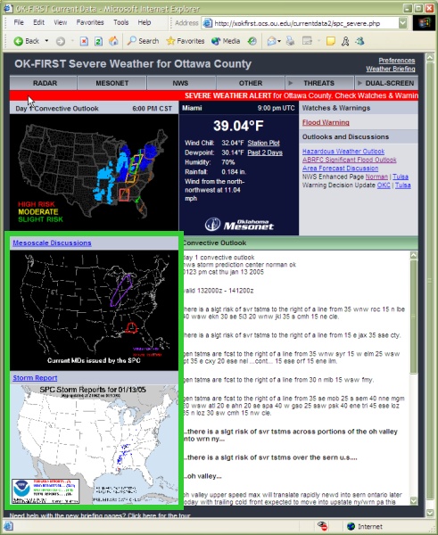 Note: These products will not discuss imminent local severe weather threats. For detailed information in your community, navigate to the complete OK-FIRST product suite (NEXRAD, Mesonet, NWS, Choose Your Threat, etc.). |